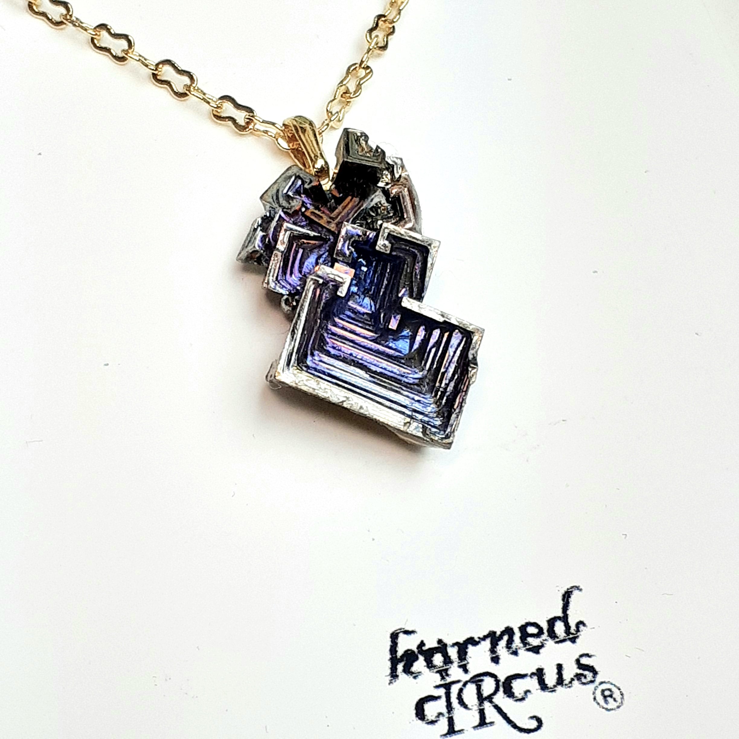 儚く美しいビスマスの人工結晶のアクセサリー